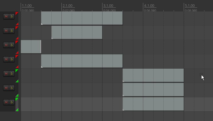 Schwa rightly points out that modifying marquee group select on mouse down to match razor edit mouse down is not ideal in edge cases. Here are the two edge cases I see that would be problematic. In the first GIF, the user marquee selects in a leader track in Group 1. On mouse down it is selecting the group. But then the user selects just one item outside the bounds of the other items, so on mouse up only that one item is selected (please keep in mind, I'm using razor select here in lieu of marquee edit as marquee selection doesn't currently have the functionality to display these edge cases). ![]() Same thing in the second GIF (which is essentially the GIF Schwa illustrated). The user again marquee selects on a leader track. On mouse down, it is selecting the group but the user ends up selecting an enclosed item so on mouse up, just that item is selected. ![]() These are the two edge cases that fail. However, it should be pointed out that this is not a normal item configuration in track group editing. In most cases, the items will look like Group 2 does in the below GIF. This GIF shows the current implementation where if you marquee select on a leader track, mouse down will not match mouse up selection. ![]() To me, the first two GIFS showing a grouped selection on mouse down and a different selection on mouse up is less problematic than the third GIF which shows no grouped selection on mouse down and grouped selection on mouse up. Especially since the first two GIFS "fail" in just those two edge cases. The third GIF "fails" in the most common use case. So the question becomes do we want this to fail for the most common use case and if not, then are we ok with the edge cases failing in the first two GIFs. IMHO, the third GIF showing the current implementation is more blind than the first two GIFS that show what it would look like if marquee group select was changed to match razor edit group select. |