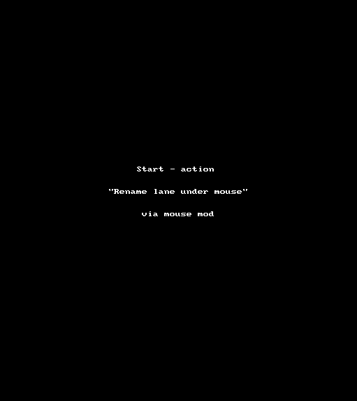 If I use the 'rename lane under mouse' action ID 42472 (assigned to alt+left click here, but happens with any modifier), the action doesn't exit until I click again on the desired lane header button - so that the entered new name follows the mouse up and down the track lanes. Wondering if this is intended.