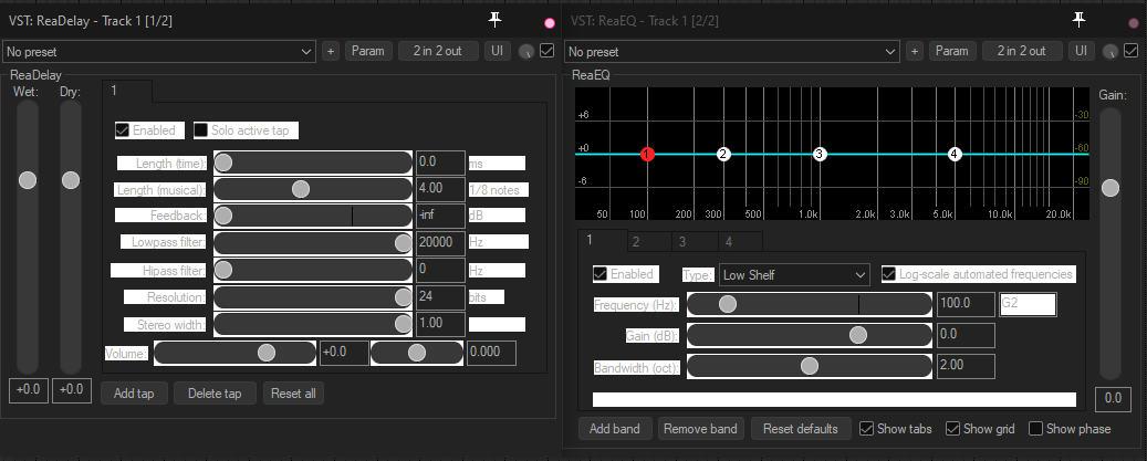 (specifically: ReaEQ, ReaDelay, ReaXcomp, ReaPitch). Those white places under almost all labels and framing tabbed sections. (test environment: Windows 7 Pro 32bit, Reaper v6.05, v6.04 all down through to 6.0, and v5.70, all 32bit) It used to be all white in 5.70 etc. Here are screenshots of buggy graphic plugins in v6: ![]() ![]() ![]() ![]() Here are screenshots of not-buggy graphic plugins in v6: ![]() ![]() And here is a screenshot of graphic of the same plugin (ReaEQ here) in v5.70: ![]() https://stash.reaper.fm/38495/1_reaeq6-graphic-bug.jpg https://stash.reaper.fm/38496/2_read...raphic-bug.jpg https://stash.reaper.fm/38497/3_reax...raphic-bug.jpg https://stash.reaper.fm/38498/4_reap...raphic-bug.jpg https://stash.reaper.fm/38499/5_reav...graphic-ok.jpg https://stash.reaper.fm/38500/6_reacomp6-graphic-ok.jpg https://stash.reaper.fm/38501/7_reae...llwhite-ok.jpg |