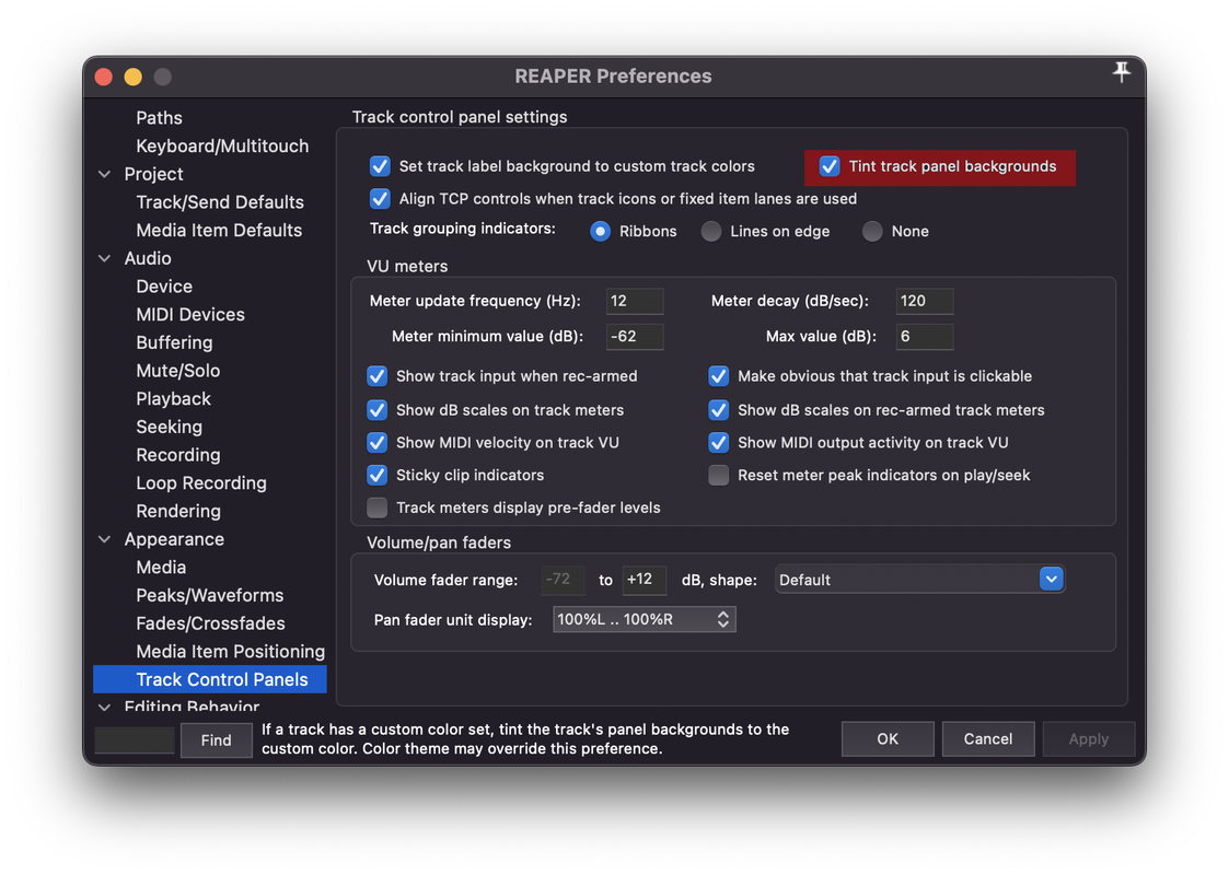 I do want to use the tint as it is applied with this theme. Colored bars at top and bottom of MCP track panels. That's fine.